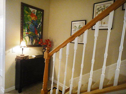 Back entry way has built-ins in the hall closet and a beautiful back pack area with custom bench. As you proceed to the 2nd level, notice the open railings all the way to the top and along the upper level. Master bedroom has crown moldings, tropical style fan and decorative trim on the ceiling.