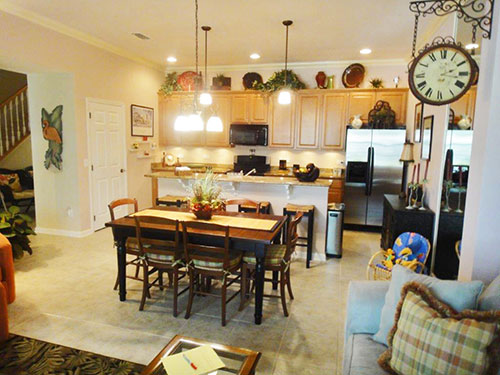 casual eating area and a breakfast bar. Open concept design opens kitchen and family room with views of the glorious courtyard beyond.