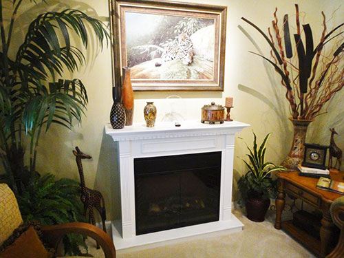 The first floor features a Living Room with an electric fireplace, kitchen with granite counters, under and over cabinet lighting, stainless steel appliances, a
